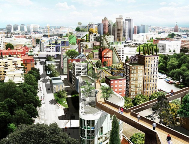 Plan se zove Klarastaden (prevod sa švedskog: „čist grad“) i biće primeljen za revitalizaciju obale Stokholma koji podrazumeva gradnju desetinu zgrada preko postojećih železničkih trasa. Glavni adut projekta arhitekte Andersa Berenssona je taj da se jednako pažnje posvećuje vrhovima zgrada koliko i prizemnim, i uglavnom najunosnijim, delovima zgrada. Novi objekti ne samo da će imati puno terasa i zelenih krovova, već će one međusobno biti povezane pasarelama.