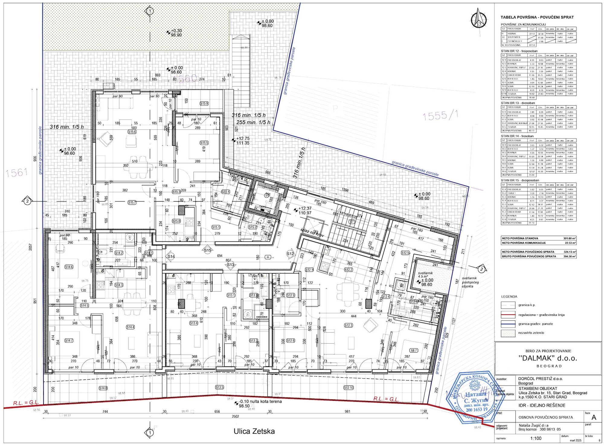 Na adresi Zetska 15, u beogradskoj opštini Stari grad, investitor Dorćol prestiž d.o.o. iz Beograda planira stambeno-poslovnu četvorospratnicu, za čiju je izgradnju izrađen urbanistički projekat koji se trenutno nalazi na javnom uvidu.