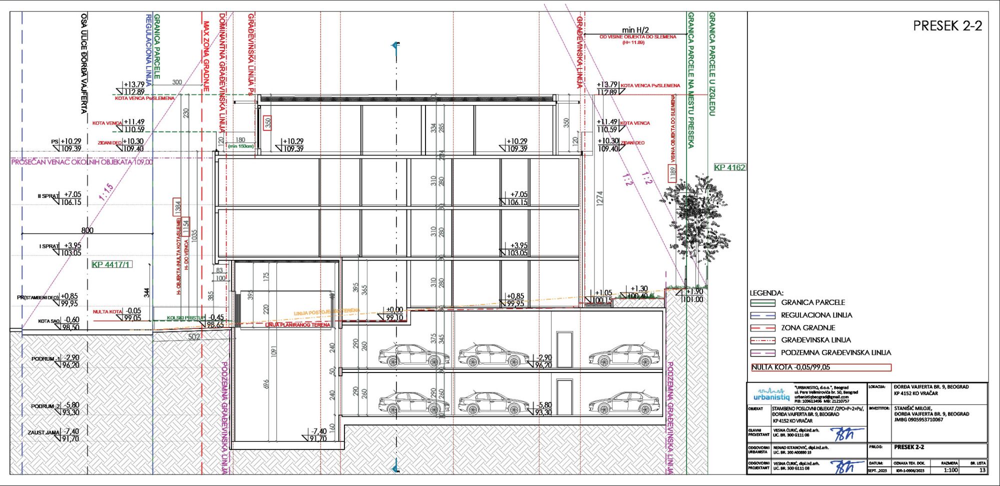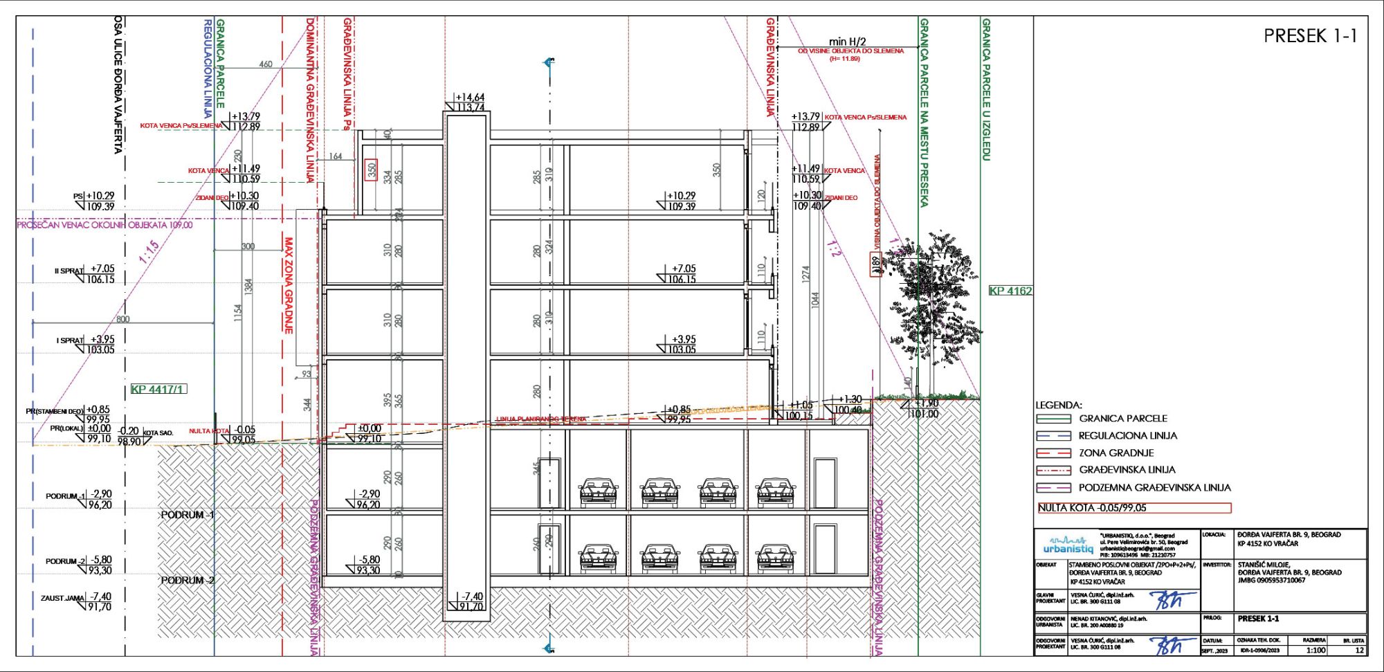 Grad Beograd oglasio je javnu prezentaciju urbanističkog projekta za izgradnju stambeno-poslovnog objekta spratnosti 2Po+P+2+Po, koji privatni investitor iz Beograda planira u Ulici Đorđa Vajferta u opštini Vračar.