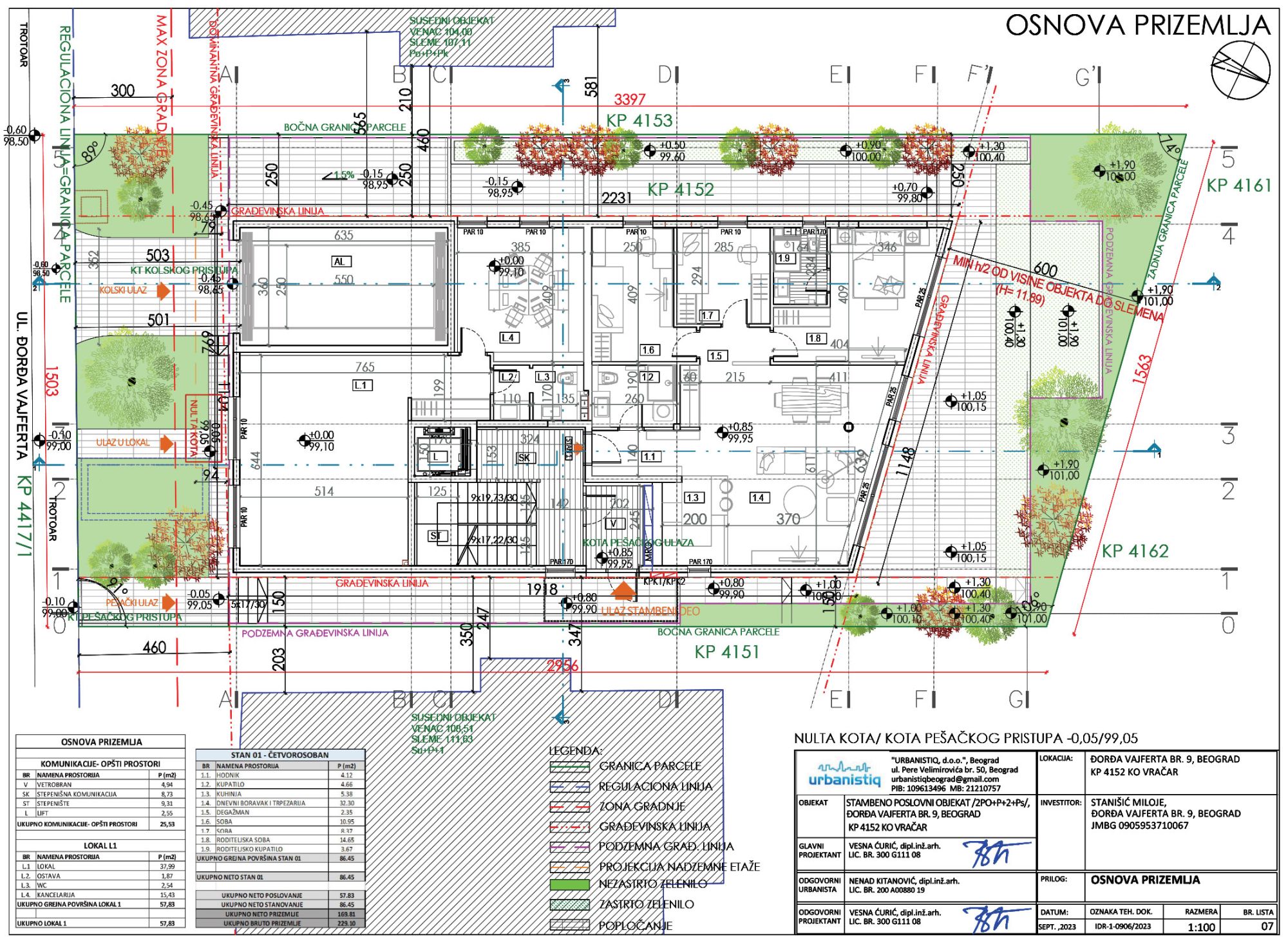 Prema važećem planu, predmetna katastarska parcela 4152 KO Vračar od 477 kvadrata nalazi se u zoni transformacije porodičnog stanovanja u delimično formiranim gradskim blokovima u višeporodično stanovanje, u celini u kojoj je pokrenuta procedura utvrđivanja za kulturno dobro – “Kotež Neimar”.