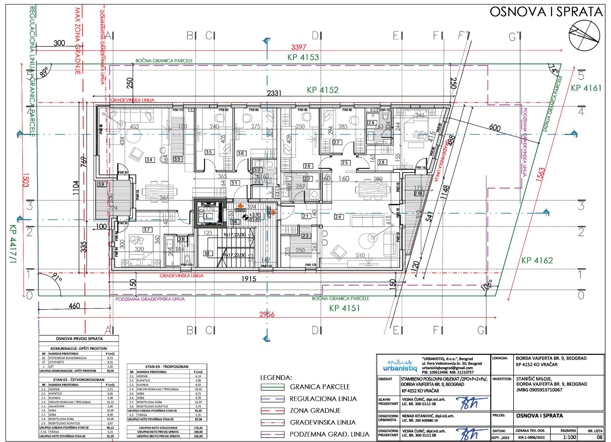 Objekat zauzima ukupnu BRGP od 1.675 m², od čega na nadzemni deo otpada 938 m², a na podzemni preostalih 737 metara kvadratnih.