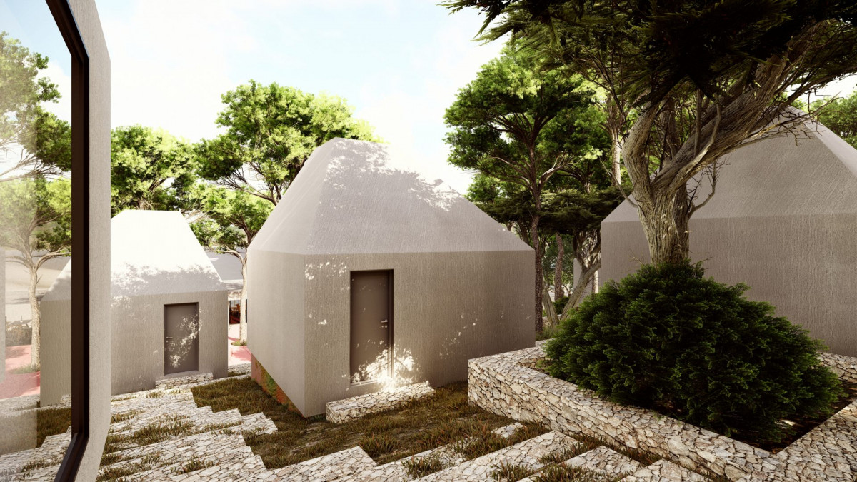 Na trg se u pozadini kompleksa veže i skupina gusto postavljenih smeštajnih jedinica kojima je želja stvoriti ambijent tradicionalnog mediteranskog mesta.
