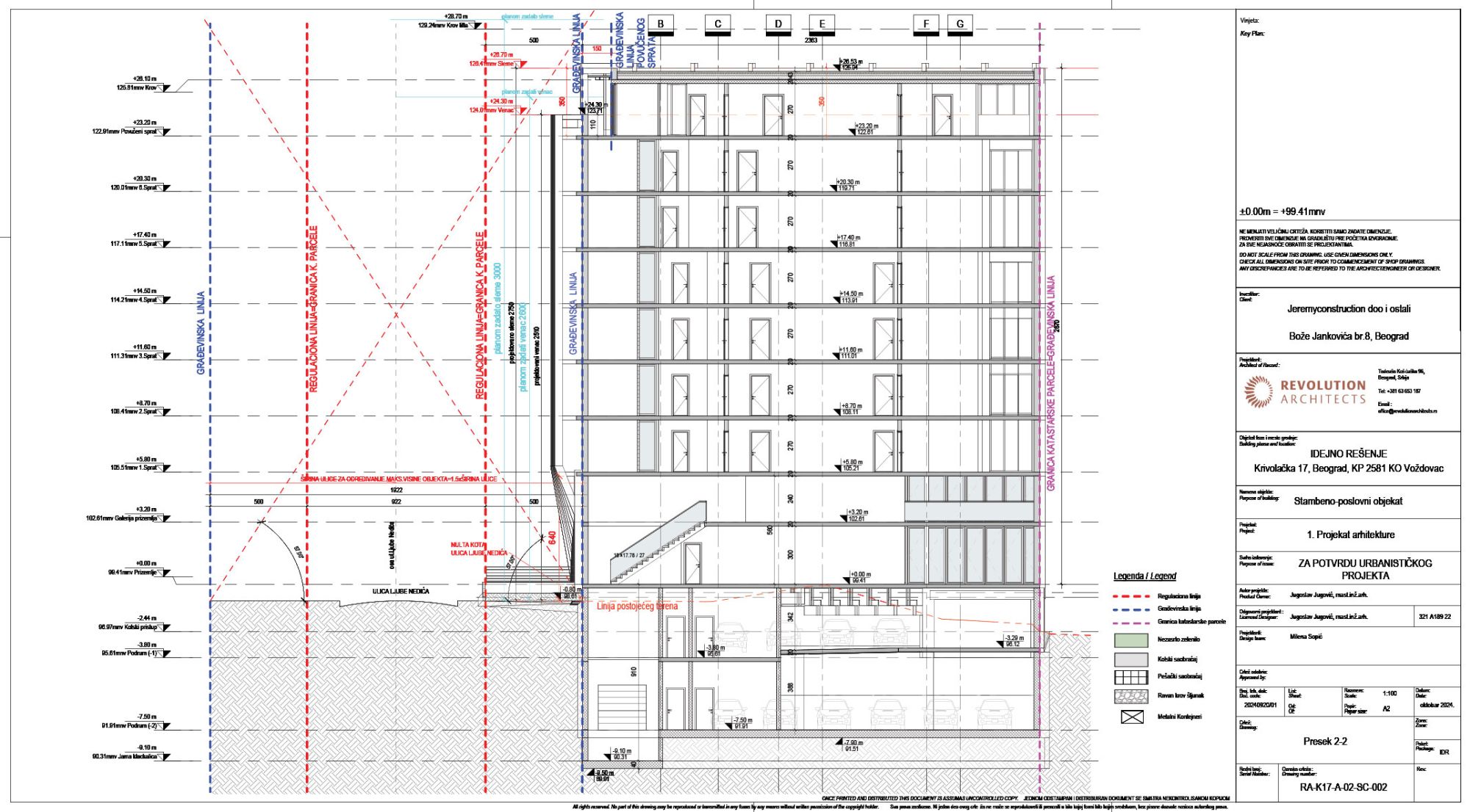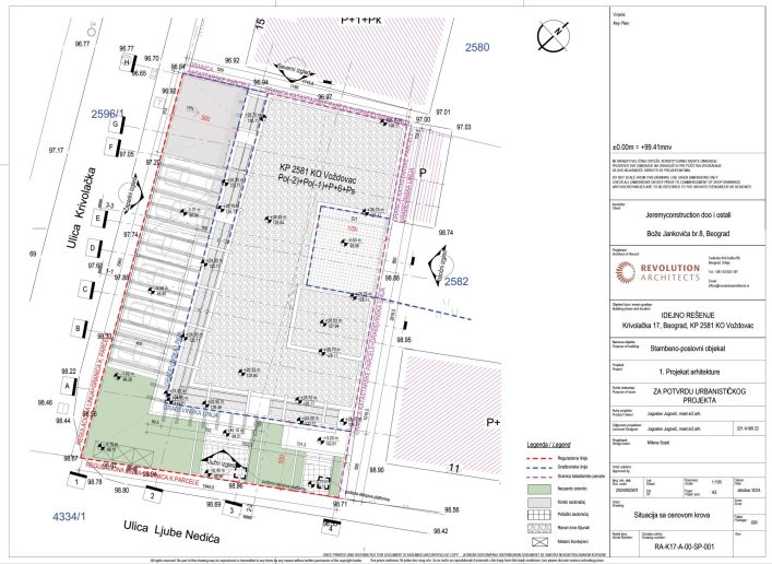 Grad Beograd stavio je na javni uvid urbanistički projekat za izgradnju stambeno-poslovnog objekta spratnosti 2Po+P+6+Ps, koji investitor Jeremy Construction iz Beograda planira na uglu ulica Krivolačke i Ljube Nedića na Voždovcu.