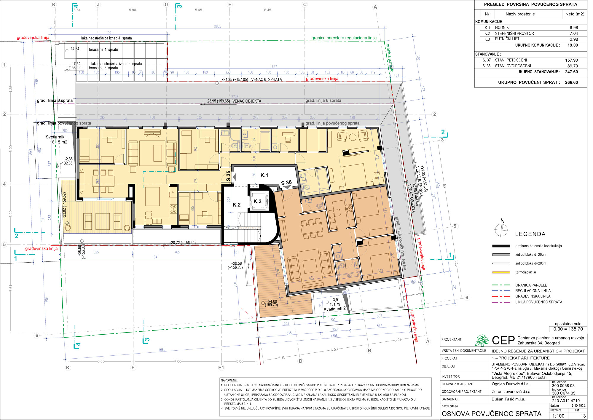 Bruto površina podzemnih etaža po SRPS-u iznosi 2.463 m², nadzemne etaže zauzimaju 4.190 m², što zbirno daje ukupnu bruto površinu od 6.653 metara kvadratnih. Ukupna neto površina objekta uznosi 5.682 m². Detaljniji opisi i razrada projekta biće dati u sledećim fazama projektovanja, navodi se u IDR-u.