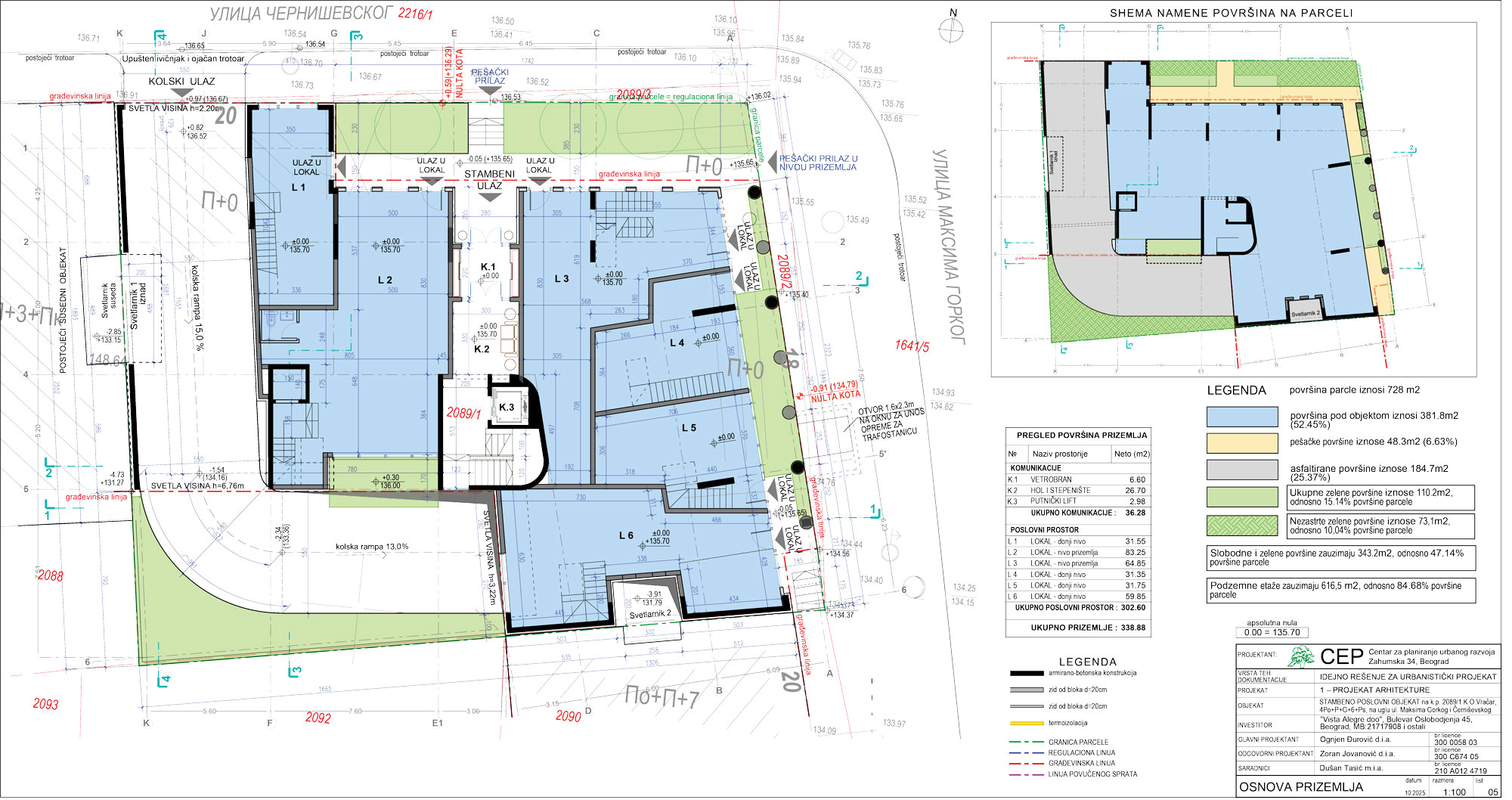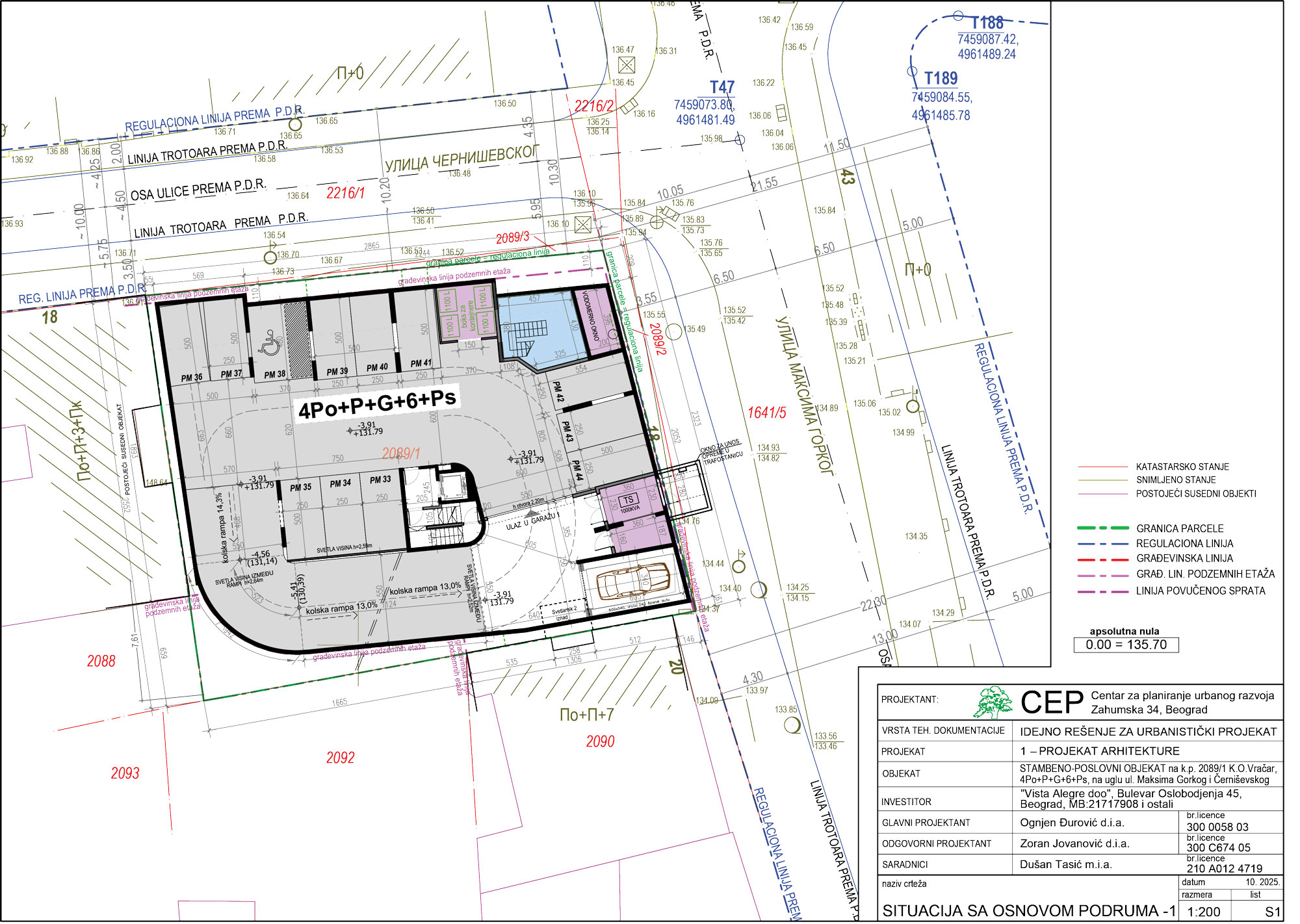 Na uglu ulica Maksima Gorkog i Černiševskog u opštini Vračar investitor Vista Alegre d.o.o. iz Beograda planira stambeno-poslovni objekat sa četiri podzemna nivoa na kojima će u dve zasebne garaže biti smešteni parking kapaciteti.
