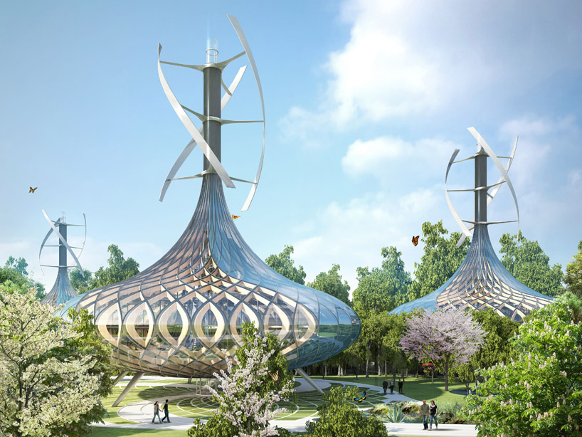 Vile Shell stoje na šest spratova od nerđajućeg čelika te tako osiguravaju da je integrisana vertikalna vetroturbina viša od obližnjih voćaka. Ova vila izgledom podseća na čahuru i pruža odličan panoramski pogled na okolni krajolik uz istovremeno osiguravanje visoke razine energetske efikasnosti zahvaljujući visokoizolacionim prozorima.