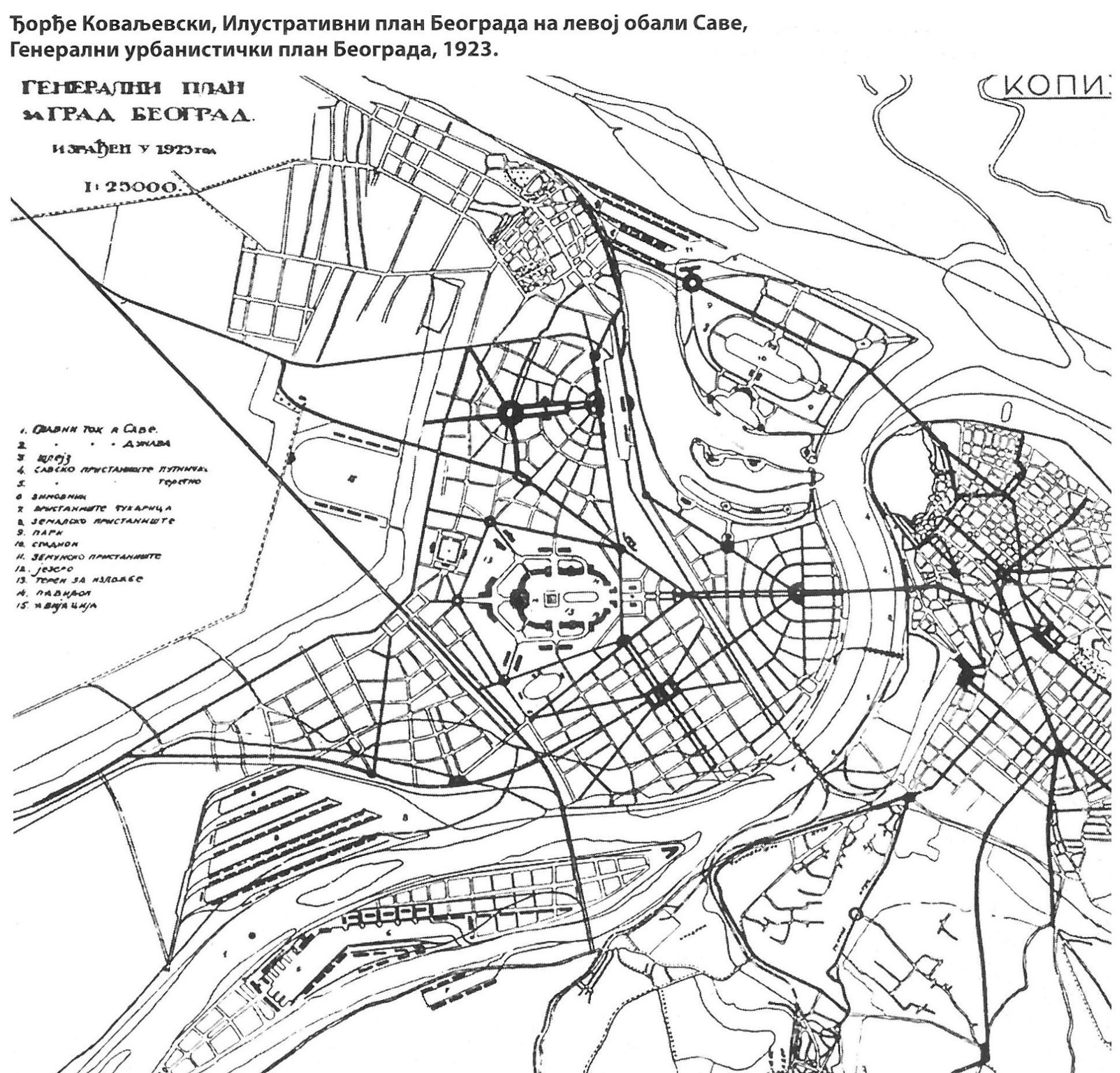 Jedno od prvih razmatranja uloge Ratnog ostrva pojavilo se u Generalnom regulacionom planu Beograda iz 1923. godine, koji potpisuje ruski emigrantski arhitekta Đorđe Kovaljevski. Možemo pretpostaviti da je uloga glavnog urbaniste za ovaj projekat poverena jednom ruskom arhitekti zato što su oni imali više iskustva u planiranju i projektovanju razvoja i izgradnje gradova u carskoj Rusiji, nego što su to imale domaće arhitekte. Već tada se razmišljalo o integraciji Zemuna sa Beogradom, gde bi se ta veza zasigurno ostvarila na prostoru koji danas zauzima Novi Beograd, ali i duž dunavske obale, gde bi i Ratno ostrvo bilo uključeno u projekat.